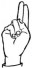 На ћирилици написано ТАНКОСА ДРНДАРЕВИЋ састоји се из 17 слова [?]. Исписано ћириличном једноручном азбуком за глувонеме: